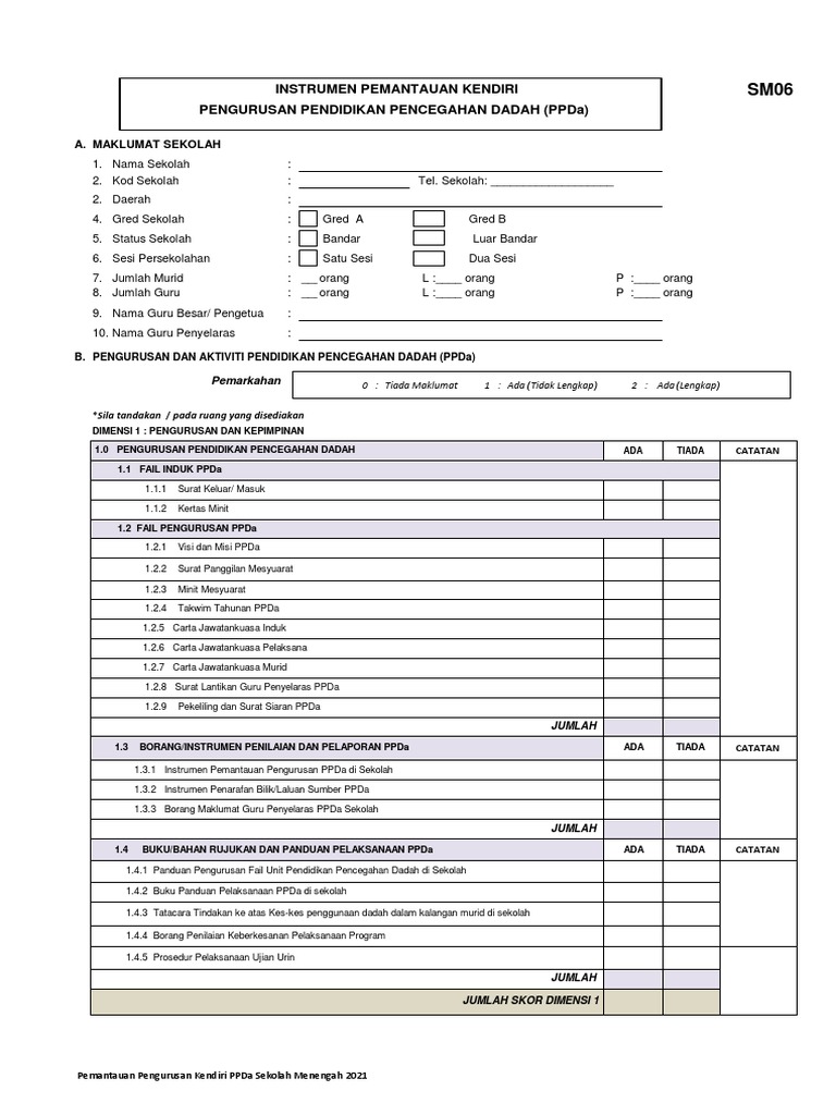 Instrument Pemantauan Kendiri Ppda 2021 Sm06 Pdf