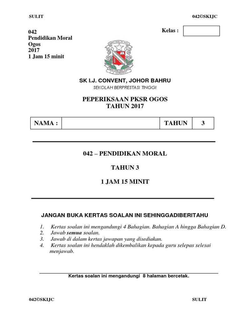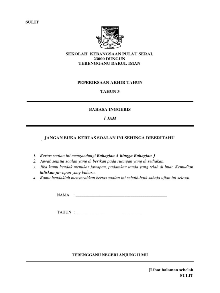 Contoh Muka Depan Kertas Soalan Peperiksaan Percubaan Pt3 Print