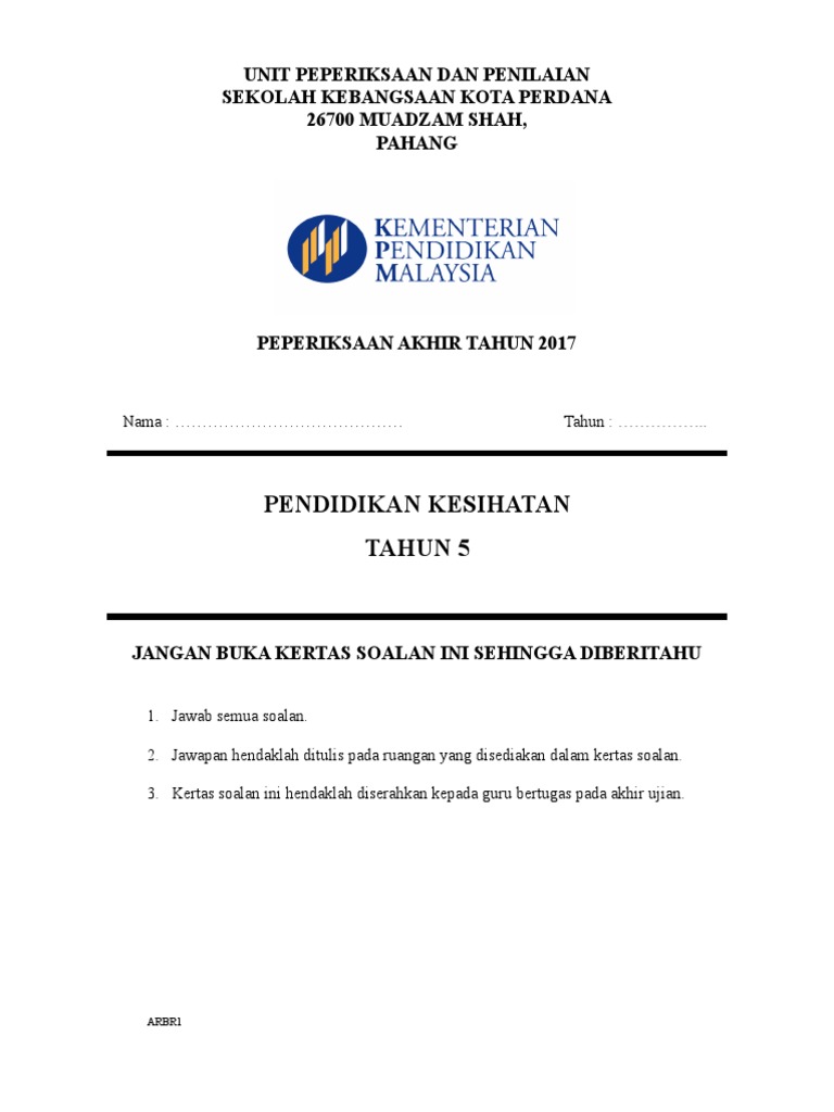 Contoh Muka Depan Kertas Soalan Peperiksaan Percubaan Pt3 Pdf